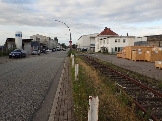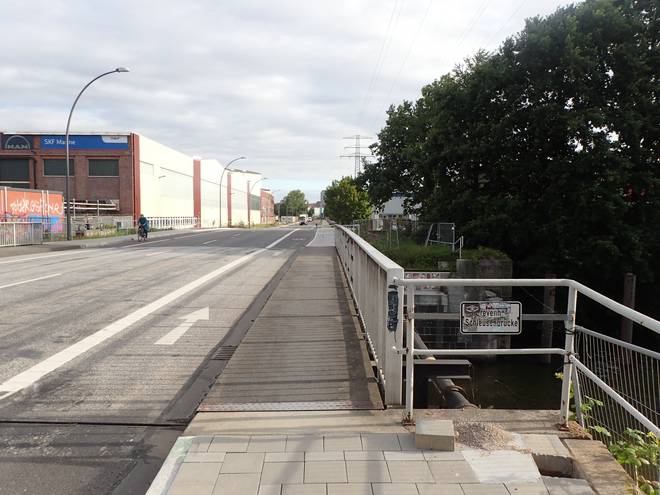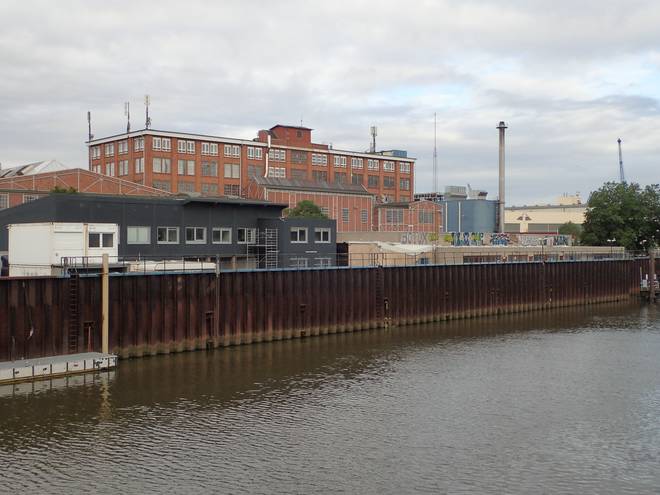Ellerholzdamm Runde 12 6.49 Uhr / Km 32,6 Und gegenüber der Anlage der Schiffswerft M. A. Flint. |