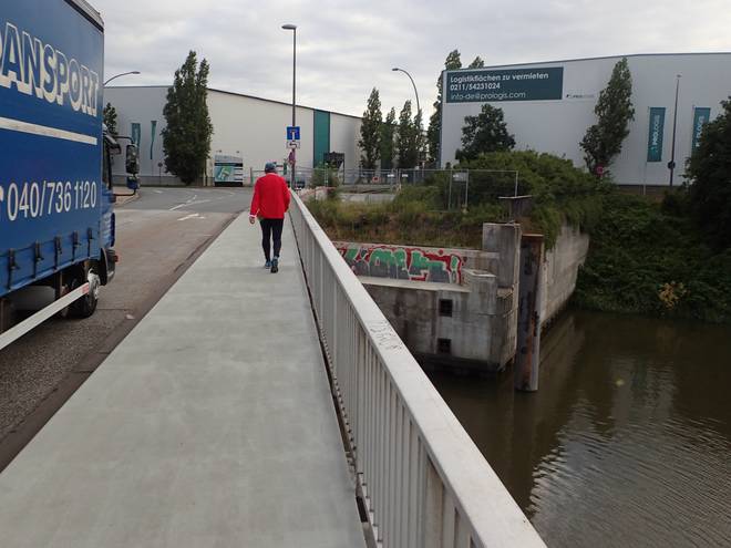 Reiherdamm Runde 1 3.12 Uhr / Km 0,8 ... und dann 15 Runden zu je 2793 Meter quasi rund um den Steinwerder Kanal, auch wenn von dem nicht allzu zu sehen war. |