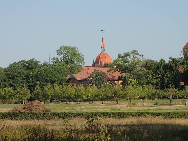 Wuhlgarten 8.38 Uhr Ich hatte zuvor einen Start bei einem Schlösser-Marathon bei Christian Hottas geplant, aber der Lauf kam kurzfristig nicht zu stande. Das markante Gebäude ist die Internationale Lomonossov-Schule Marzahn. Rechts am Rand die Krankenhauskirche im Wuhlgarten. |