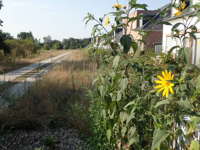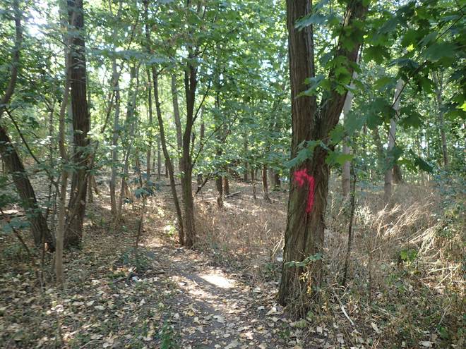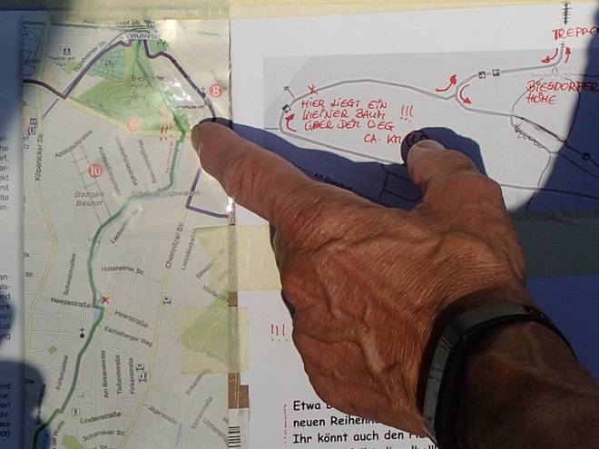 Landschaftspark Wuhletal Bisdorfer Höhe 9.14 Uhr / Km 1,1 Irgendwie war es merkwürdig. Wie sollten wir von hinter dem Berg wieder zurück zur Wuhle kommen? |