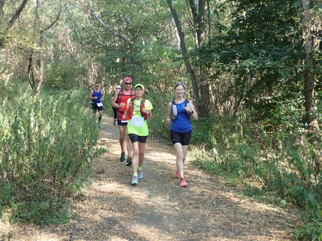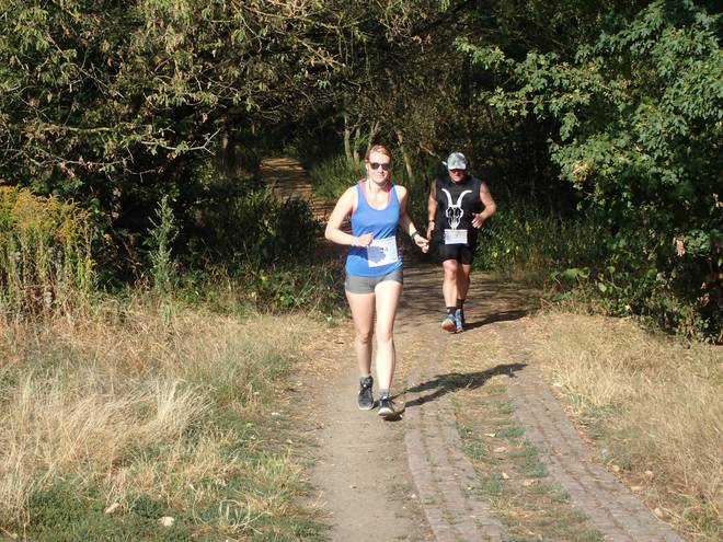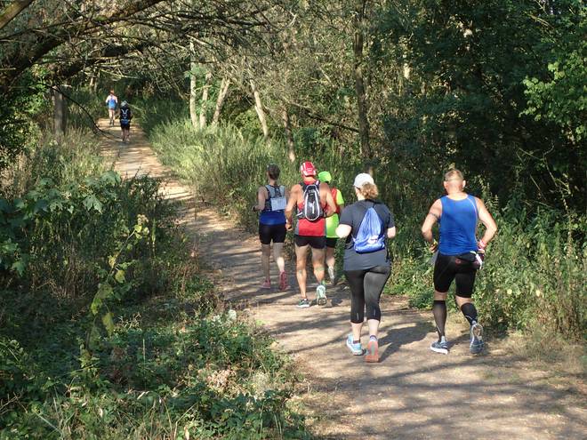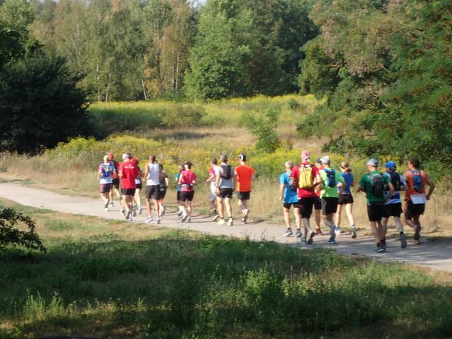 Piepertswinkel Wuhletal Wanderweg 9.59 Uhr / Km 7,7 Nach längerer Zeit sah ich mal wieder Mitläufer. Dank Zoom scheinen sie hier näher als sie waren. |