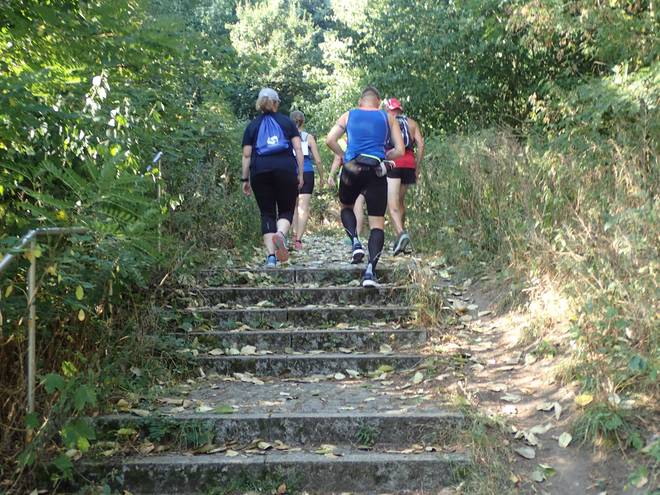 Landschaftspark Wuhletal Bisdorfer Höhe 9.21 Uhr / Km 1,8 Bergab war auch wegen der Treppen nicht einfacher. |