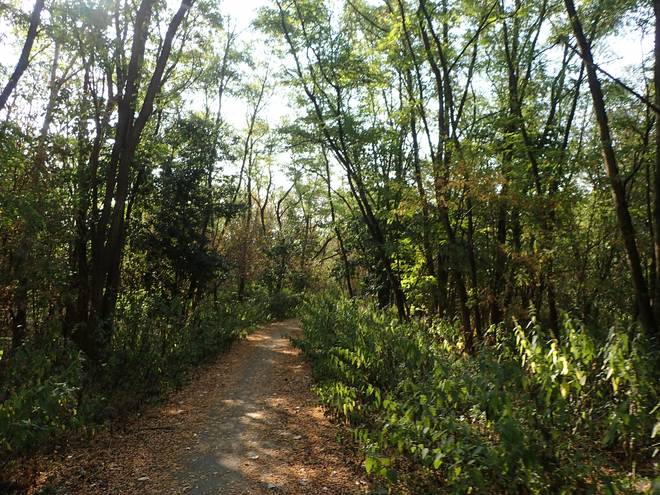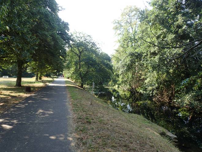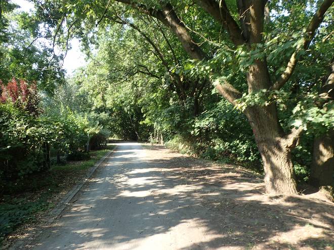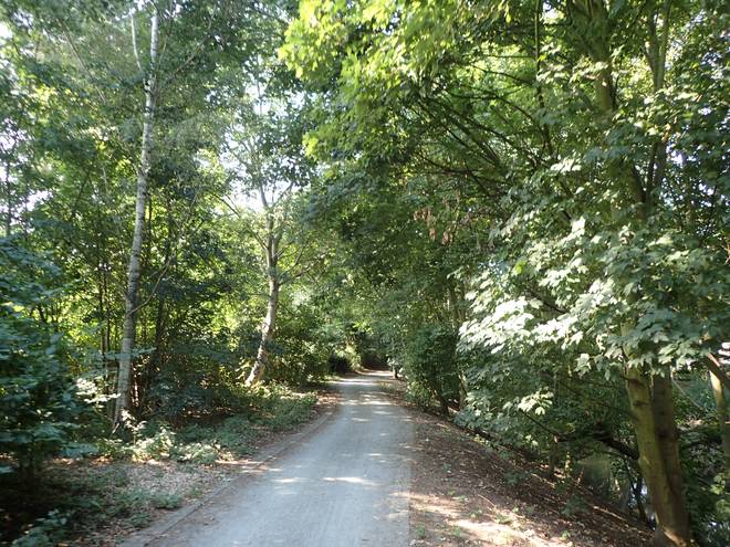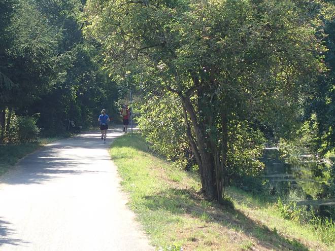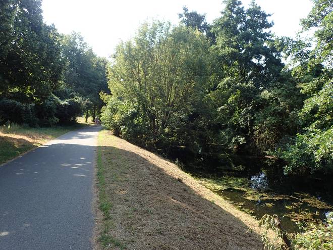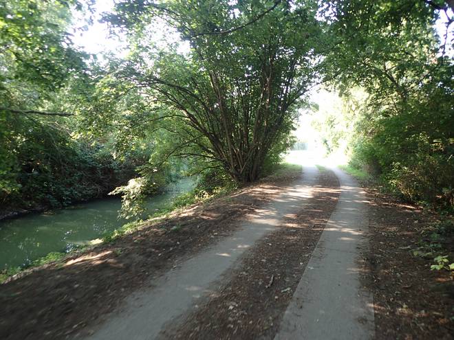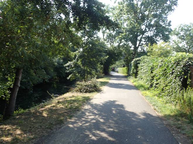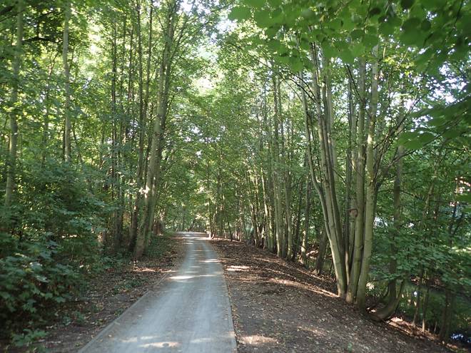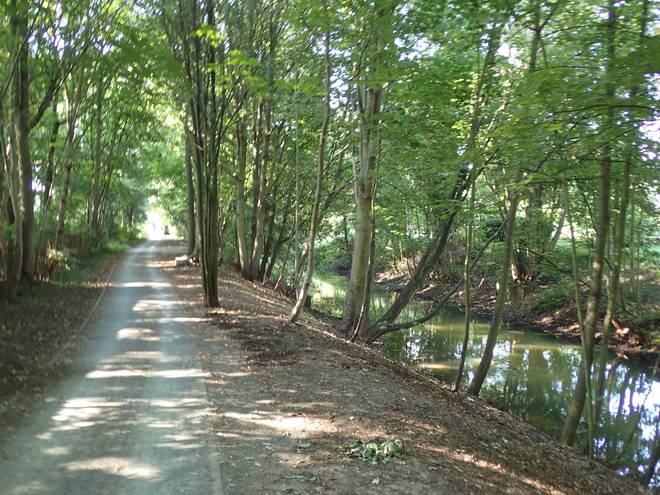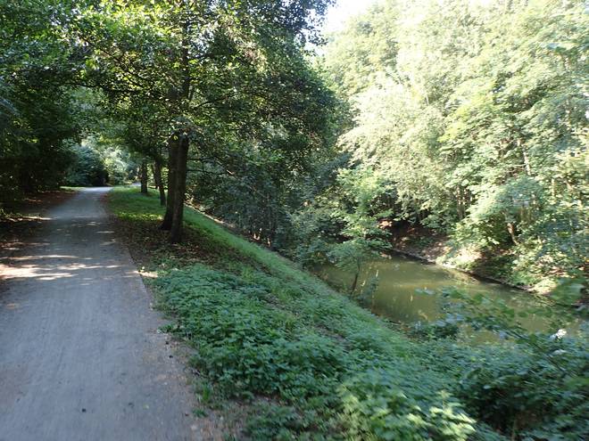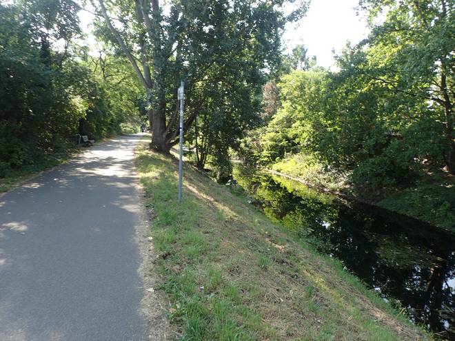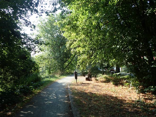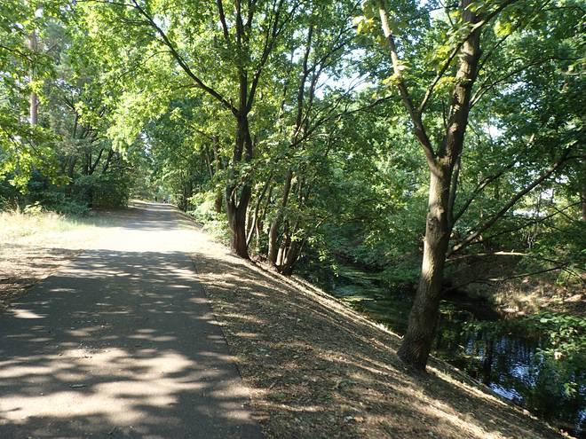 An der Wuhle Wuhletal Wanderweg 9.43 Uhr / Km 5,3 Immerhin mal etwas Schatten. Der tat immer gut. |