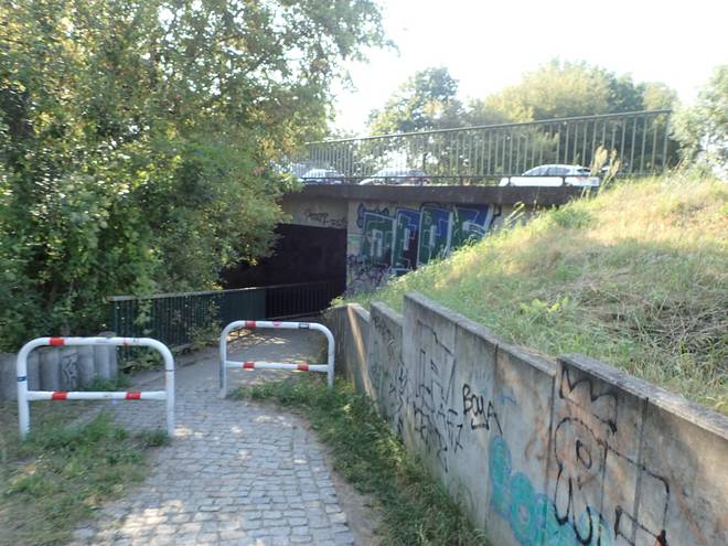 Möwenweg Wuhletal Wanderweg 9.29 Uhr / Km 2,9 Gänzlich verkehrsfrei war die Strecke nicht, aber gerade an der Wuhle entlang hatte man wenig Autos und Radfahrer. |