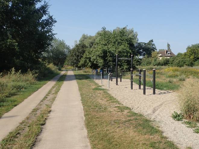 Landschaftspark Wuhletal Wuhletal Wanderweg 9.24 Uhr / Km 2,2 Ein paar Plätze hatte ich beim Stück bergab verloren, aber nun sollte es eigentlich flach weitergehen. Eigentlich... |