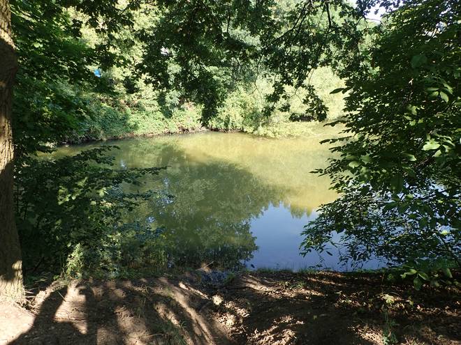 Wuhleblase Wuhletal Wanderweg 9.41 Uhr / Km 5,0 Reinspringen wäre jetzt toll. Aber dann 37,2 Kilometer mit nassen Füßen? |