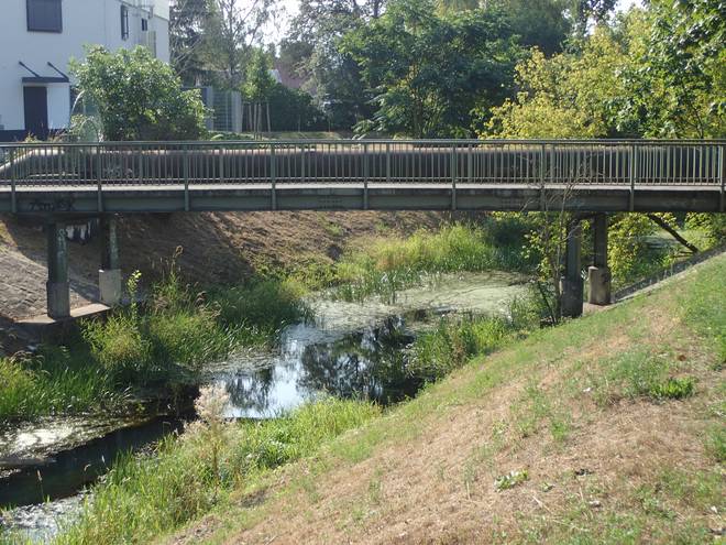 Wuhletal Wanderweg 9.06 Uhr / Km 0,3 .. und ein erstes Mal über die Wuhle drüber. |
