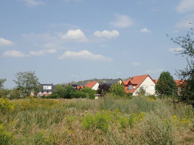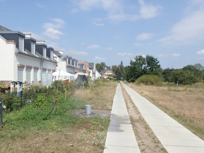 Bismarcksfelder Straße Wuhletal Wanderweg 12.04 Uhr / Km 23,6 Nach Trinkwasser suchte ich immer noch, aber hier gab es nicht einmal mehr Gärten. |