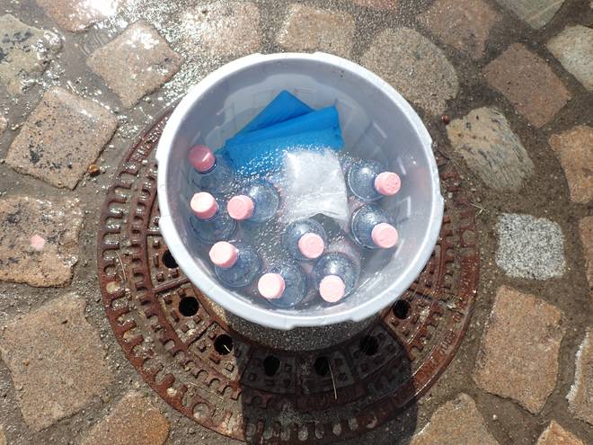 Möwenweg Wuhletal Wanderweg 12.41 Uhr / Km 27,4 Und gekühlte Getränke gab es auch noch. Vermutlich anfangs mal eisgekühlt. |