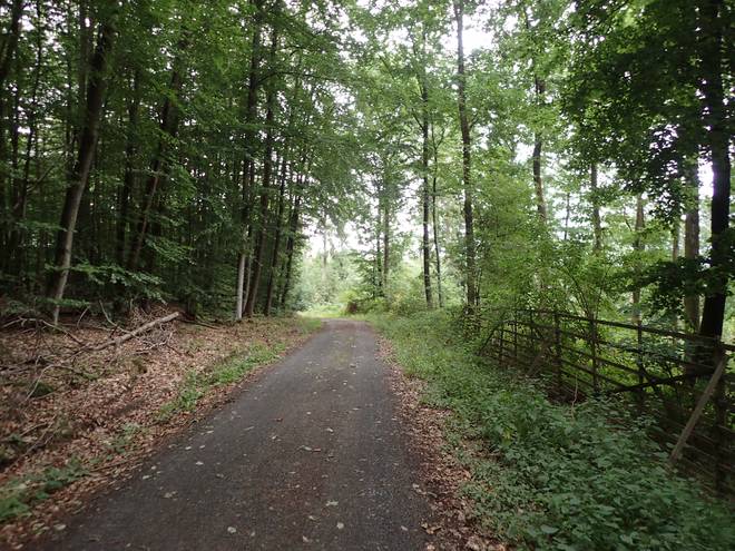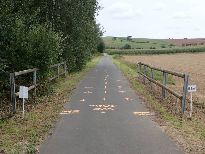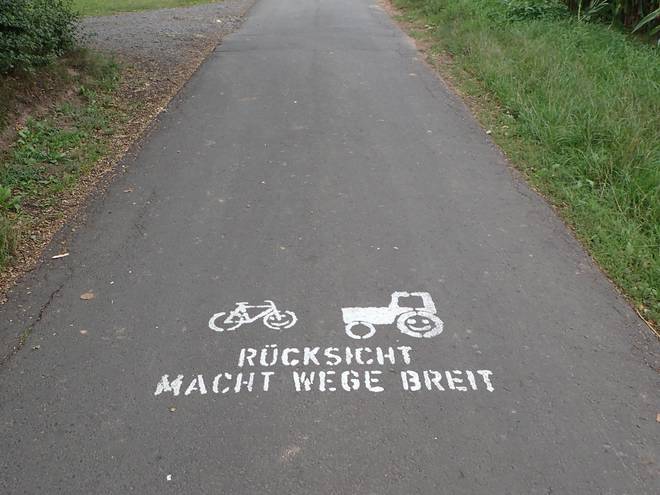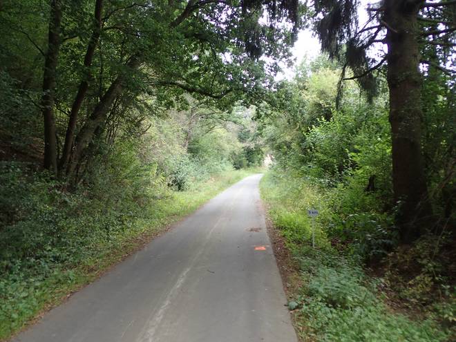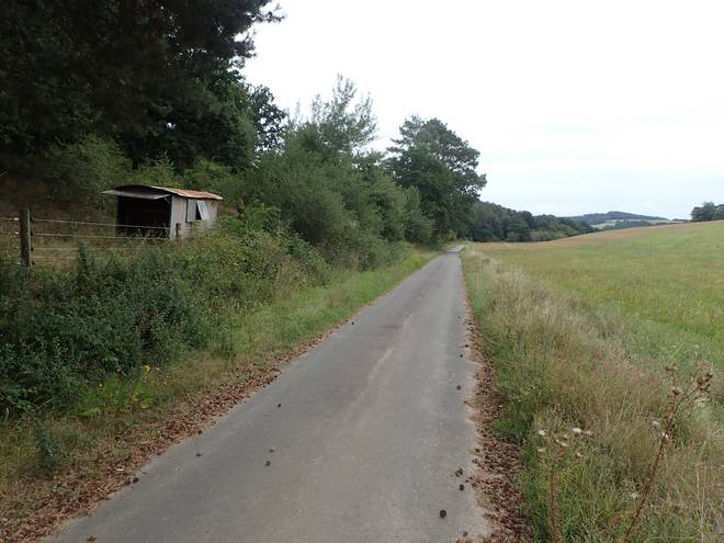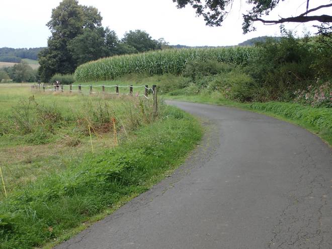 Wambacher Weg 14.21 Uhr / Km 38,195 Wieder ein Kilometer weniger. So ohne Wandern und leicht erhöhtem Tempo vergingen Kilometer auch schneller. |