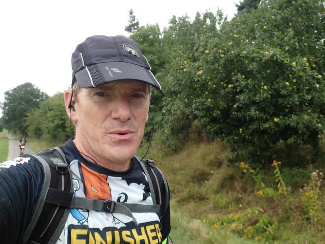 14.15 Uhr / Km 37,195 Noch fünf Kilometer. Es lief zunehmend besser. Und wen erblickte ich da vorne? Kannte ich den nicht? |
