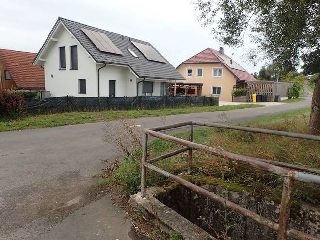 Würfelweg 13.54 Uhr / Km 33,9 Zudem war ich gerade nicht langsam unterwegs, sondern rollte komfortabel das leichte Gefälle runter. |