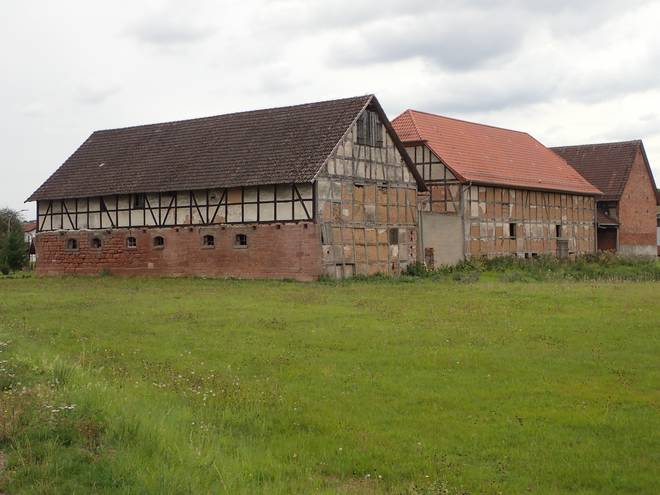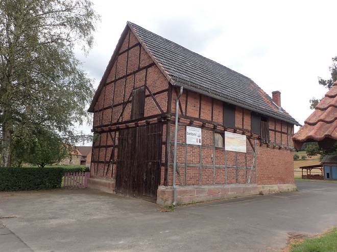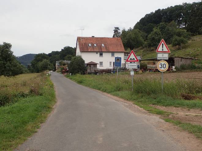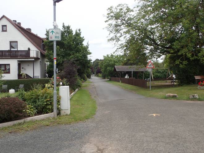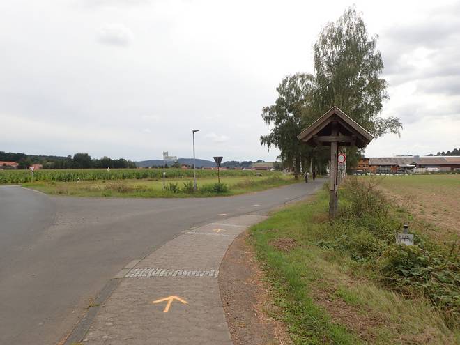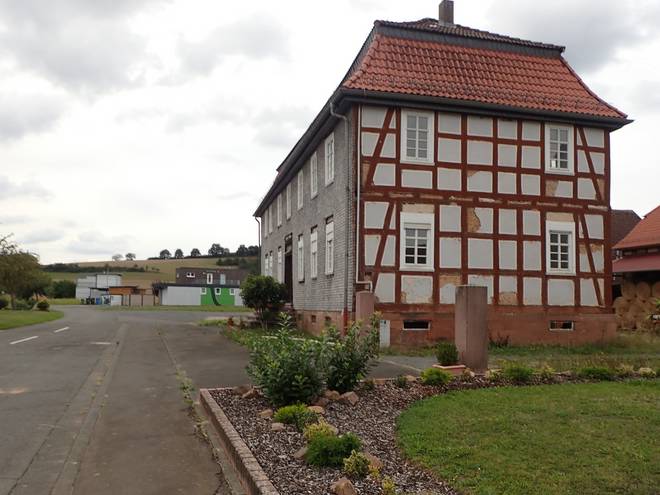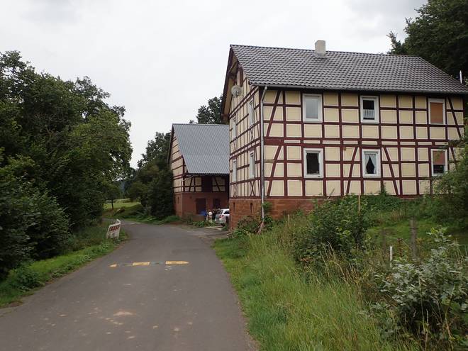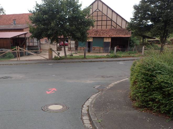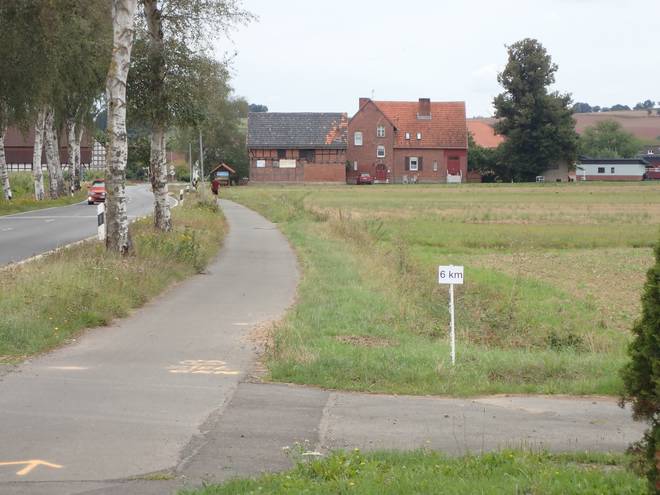 Würfelweg Marburger Weg Wohra 14.00 Uhr / Km 34,7 Erstmals seit Albshausen sah ich mal wieder Häuser. |