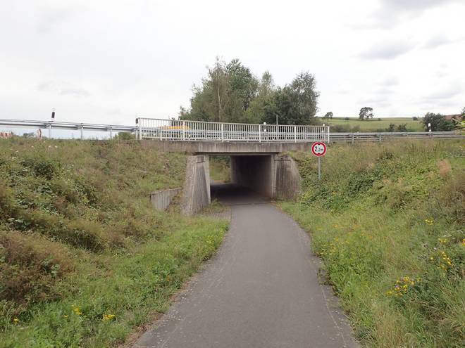 14.17 Uhr / Km 37,5 Die B 3 unterquerte ich schon einmal bei Kilometer 7. |
