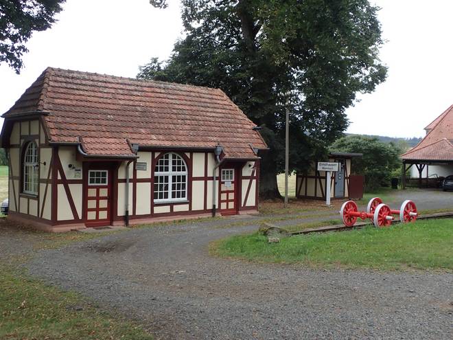Fiddemühle 14.26 Uhr / Km 39,1 Der wohl ehemalige Bahnhof von Ernsthausen-Wambach. |