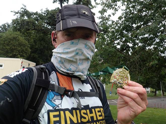 Am Schwimmbad Rauschenberg 14.52 Uhr Hier die Medaille noch einmal ohne Maske. Gleich nach dem Verlassen des Geländes. |