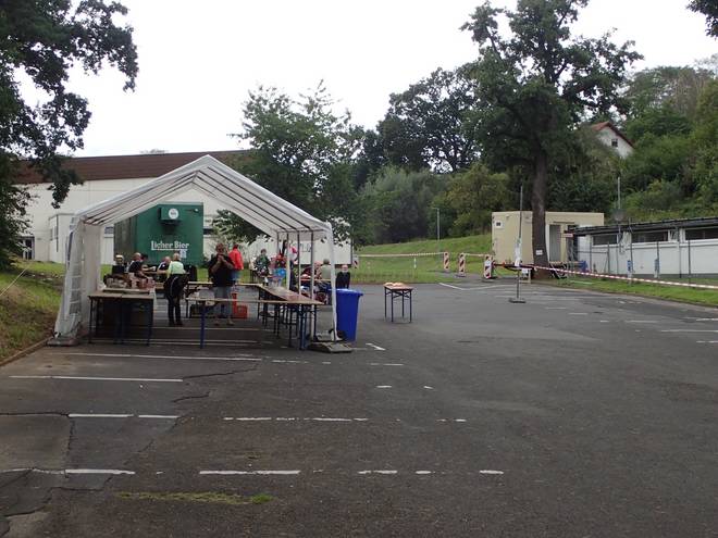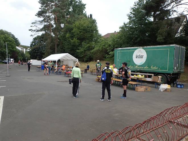 Am Schwimmbad Rauschenberg 14.46 Uhr Nun ging es noch an die Ziel-Verpflegung. Neben Trinken gab es auch noch Essen, aber danach war mir nicht. |