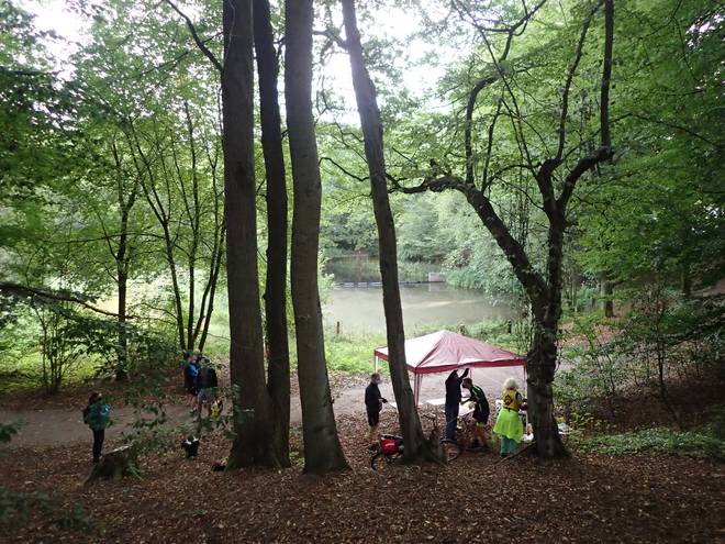 Volksdorfer Teichwiesen 16.06 Uhr Jetzt mußten wir nur noch warten, bis Christine dort hinten wieder auftauchte. |