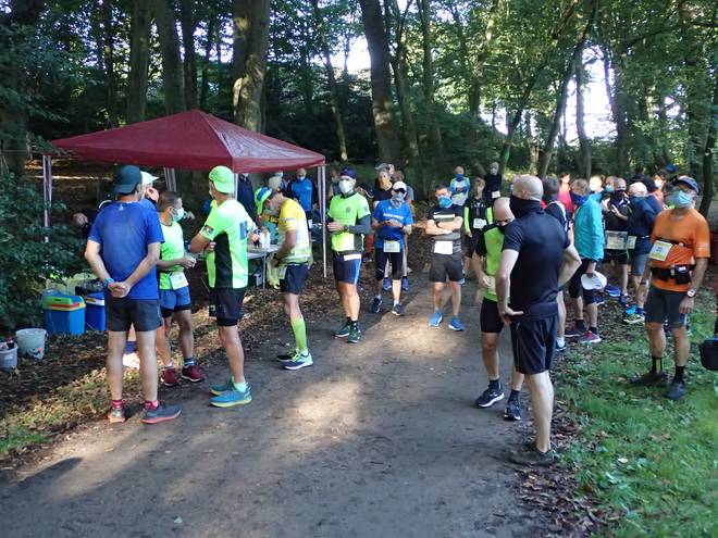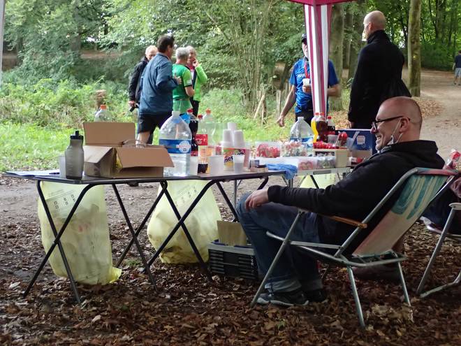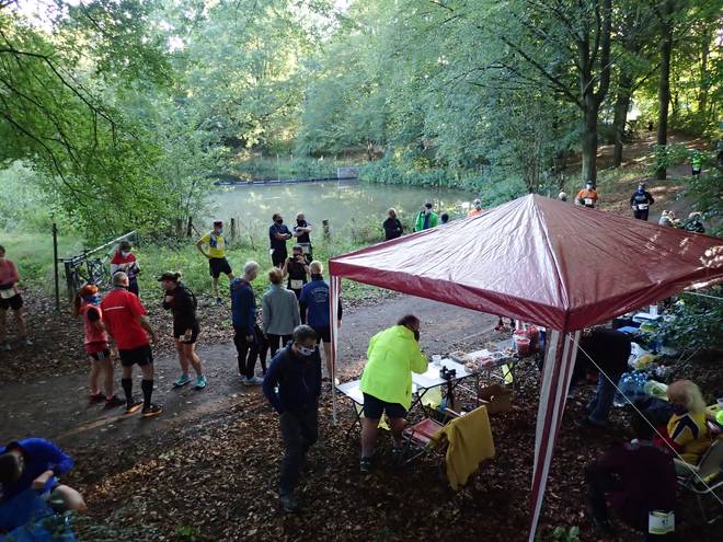 Volksdorfer Teichwiesen 8.39 Uhr Wegen der Corona-Pandemie galt am Start Masken-Pflicht und auch die Verpflegung war soweit möglich pandemie-gerecht einzeln verpackt. |