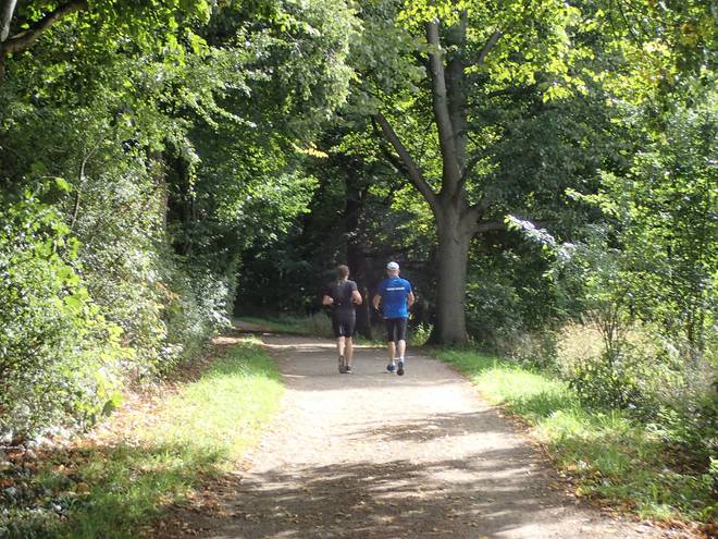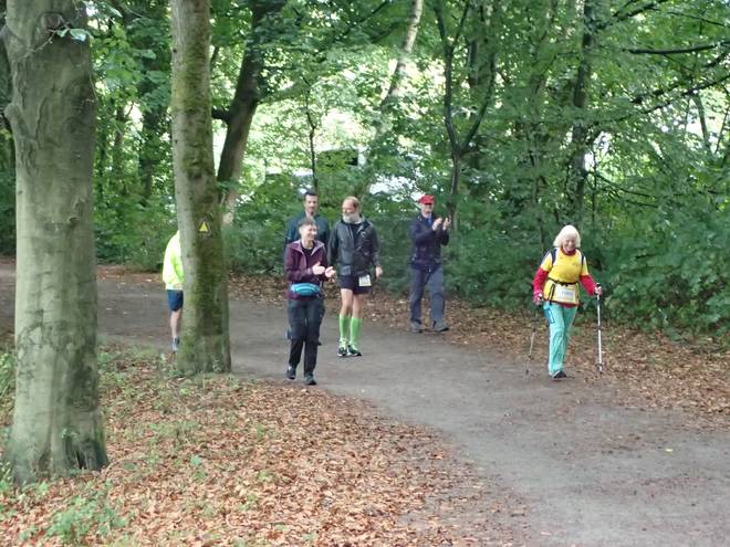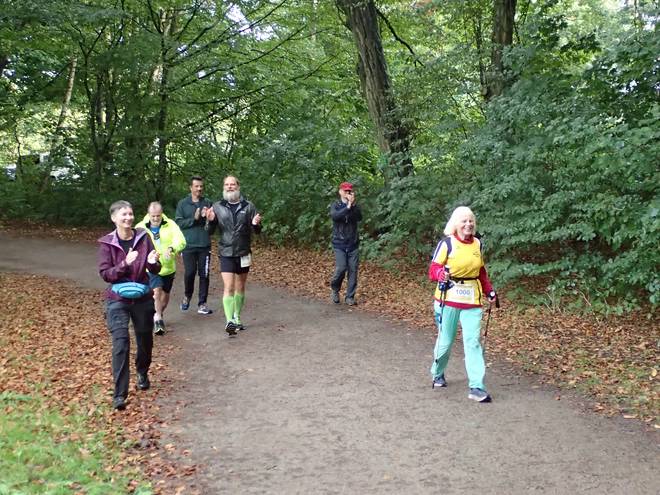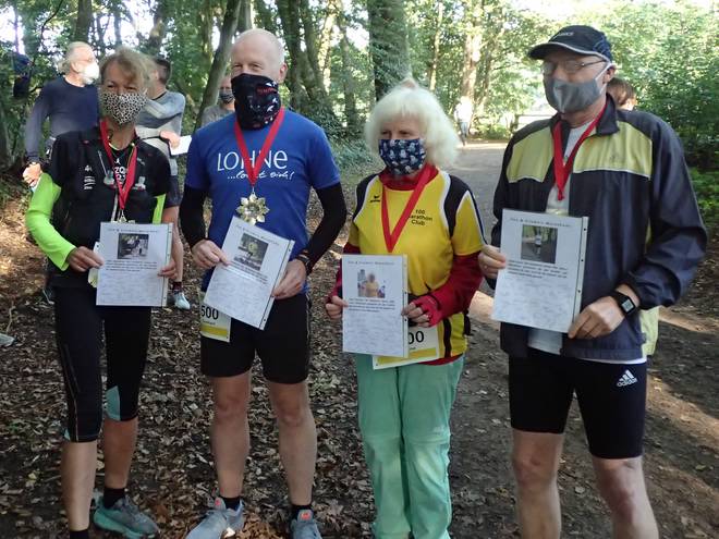 Volksdorfer Teichwiesen 14.10 Uhr Herzlichen Glückwunsch zum 100. Marathon. Mir kam es weit vor. Gefühlt waren wir mindestens 100 zusammen gelaufen. |