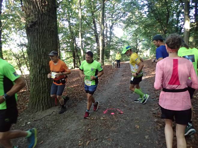 Runde 16 13.26 Uhr / Km 41,4 Meinem Tempo hatte diesen Regenguß nicht geschadet. Weiter ging es mit schnellen Schritten Richtung Ziel. Ein wenig mehr Zeitpuffer auf die vier Jubilare war gut. Da hatte ich mehr Zeit zum Umziehen. |