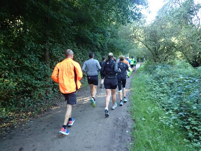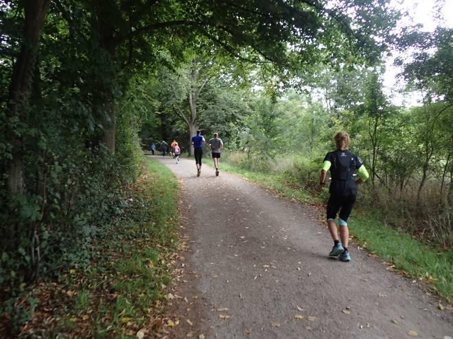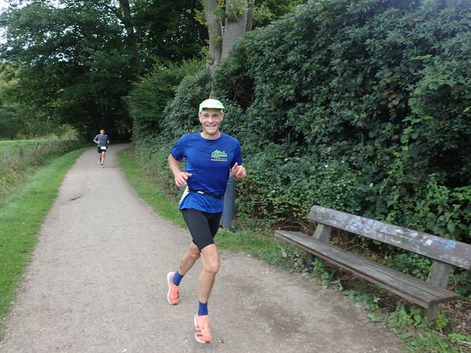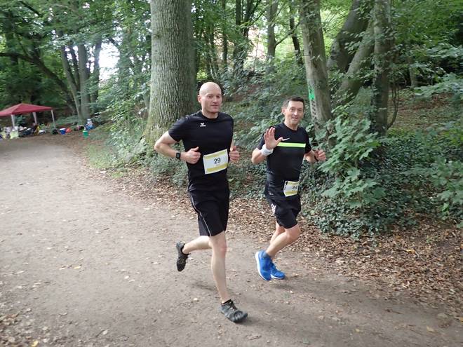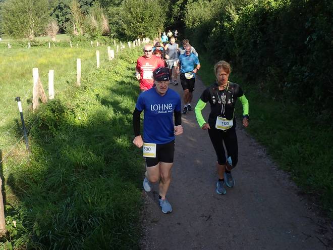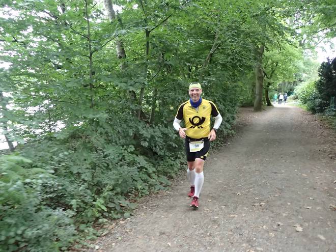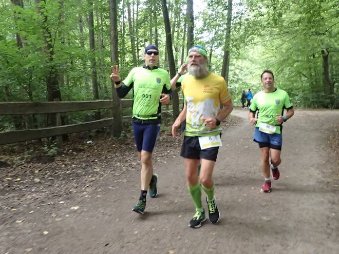 Runde 4 10.03 Uhr / Km 9,0 Okay... ein Ziel hatte ich den Tag . Ich wollte Fotos von den vier Jubilaren beim Zieleinlauf machen. Ideal wäre es daher, vor den Vieren im Ziel zu sein. Anfangs klappte das auch (ich hatte nur Bodo aus den Augen verloren), aber dann überholte mich Burkhard. |