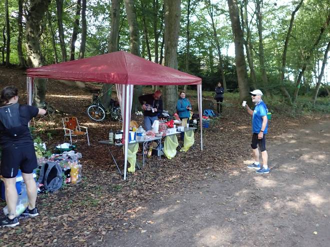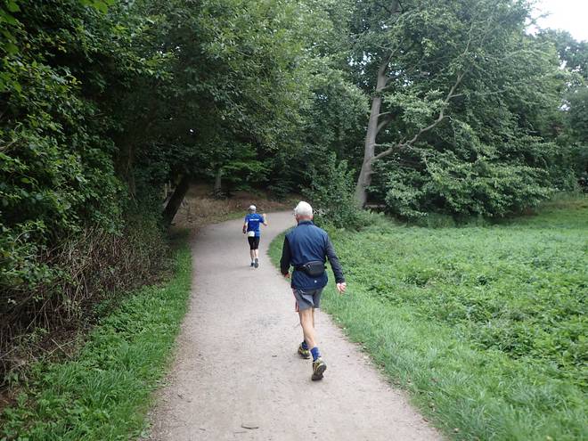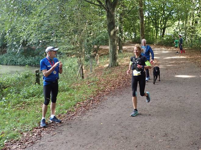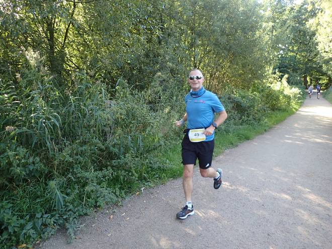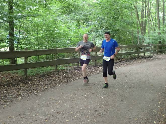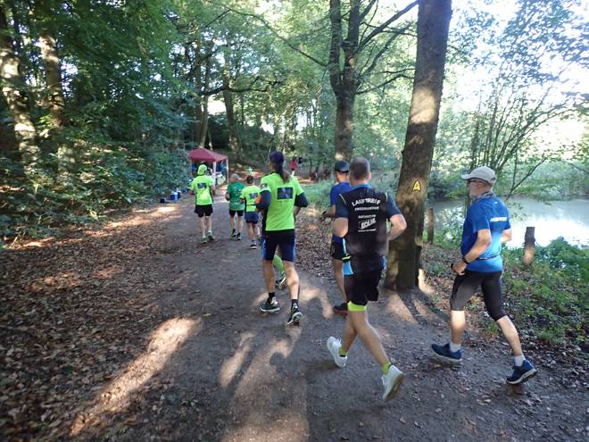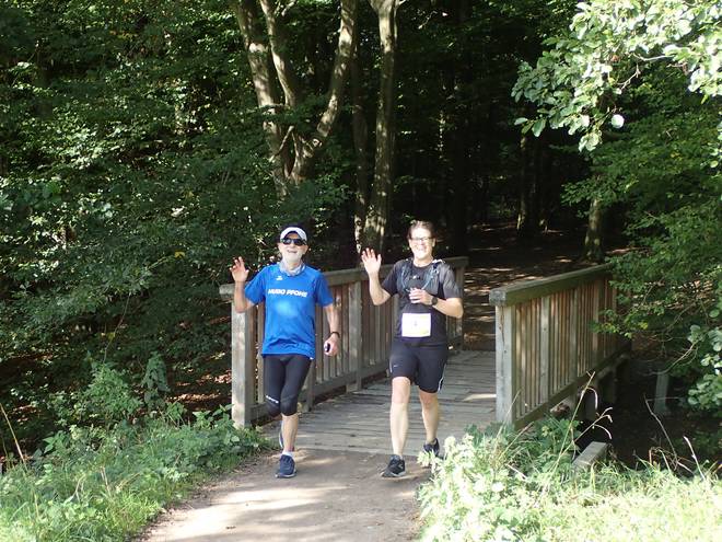 Volksdorfer Teichwiesen 13.38 Uhr Ich war fertig und konnte nun auf die Jubilare warten. Madeleine und Burkhard würden wohl die ersten zwei sein. Beide hatten hier noch je zwei Runden zu absolvieren. |