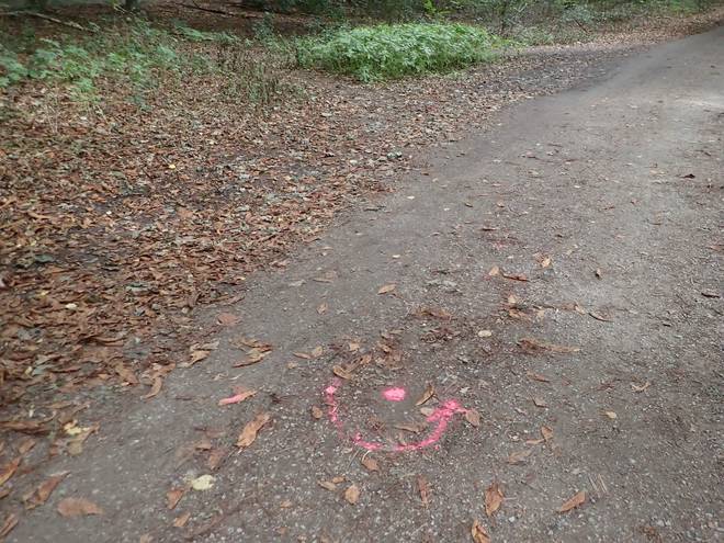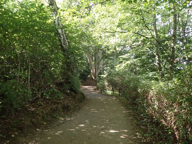 Auftakt 9.08 Uhr / Km 0,43 Als Auftakt ging es 867 Meter als Pendel-Stück gegen den Uhrzeigersinn. Im Bild der Wendepunkt. |