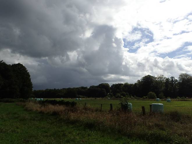 Runde 11 12.04 Uhr / Km 28,2 Da kam schon die nächste dunkle Wand heran gezogen. Das würde doch nicht noch naß enden? |