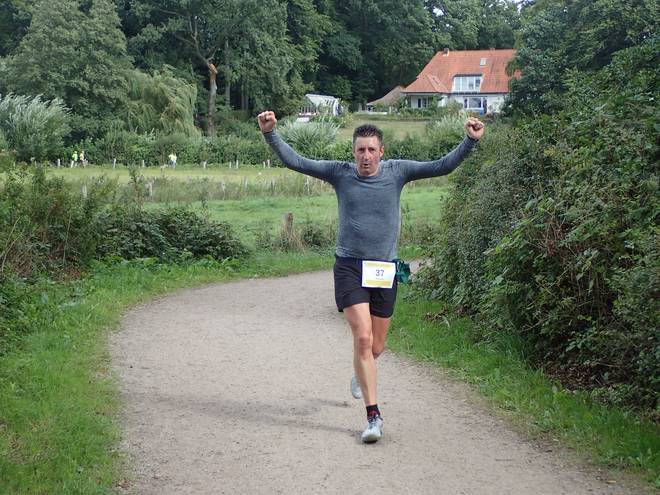 Volksdorfer Teichwiesen 14.12 Uhr Danach dauerte es gar nicht lange und Burkhard kam ins Ziel gestürmt. Es brauchte 5:06:11 Stunden. Ja stimmt. Madeleine kam sechs Minuten früher ins Ziel mit offiziell nur drei Minuten weniger. Aber da die Zeiten selbst gestoppt wurden, war wohl eine Uhr ungenau. |
