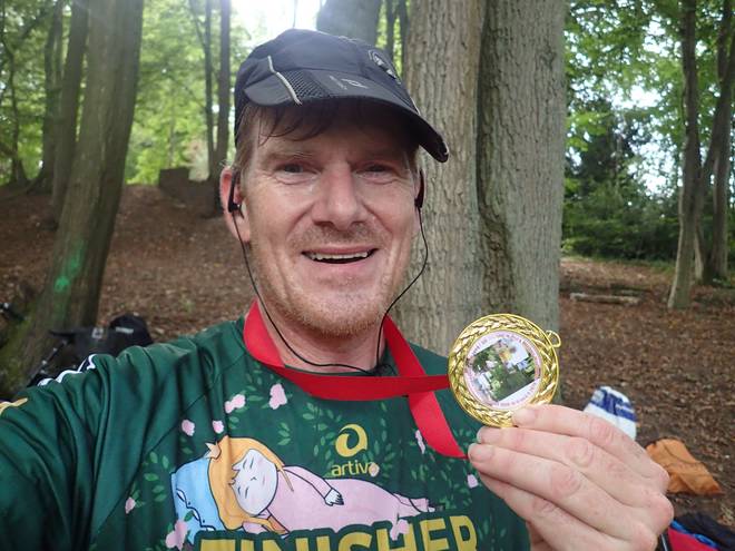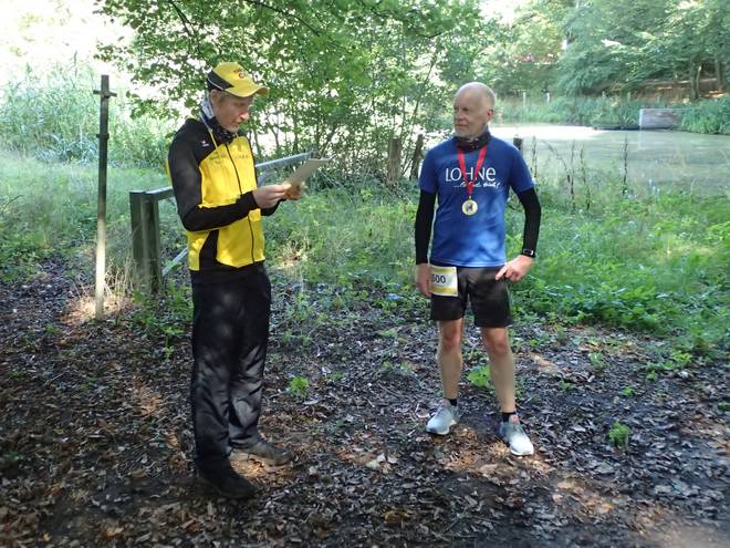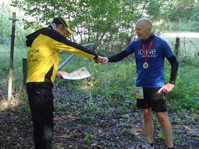 Volksdorfer Teichwiesen 13.37 Uhr Die zeit reichte für Platz 9 bei 48 Marathon-Finishern. In meiner Altersklasse M50 hüpfte ich so gerade noch mit aufs Treppchen. |