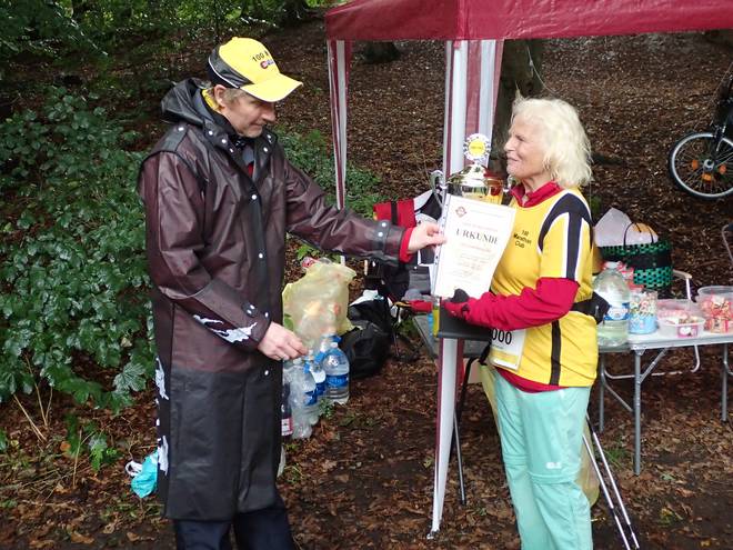 Volksdorfer Teichwiesen 16.17 Uhr Mario war selbstverständlich auch noch da und überreichte zunächst den Ehren-Pokal für Christines 1000er-Jubiläum. |