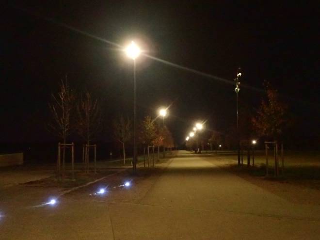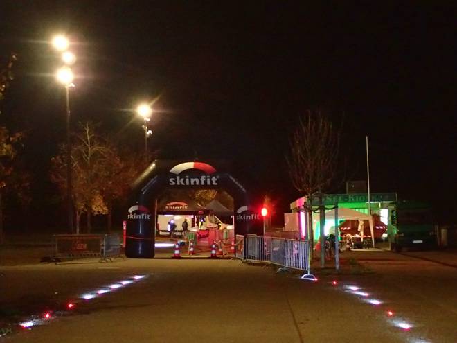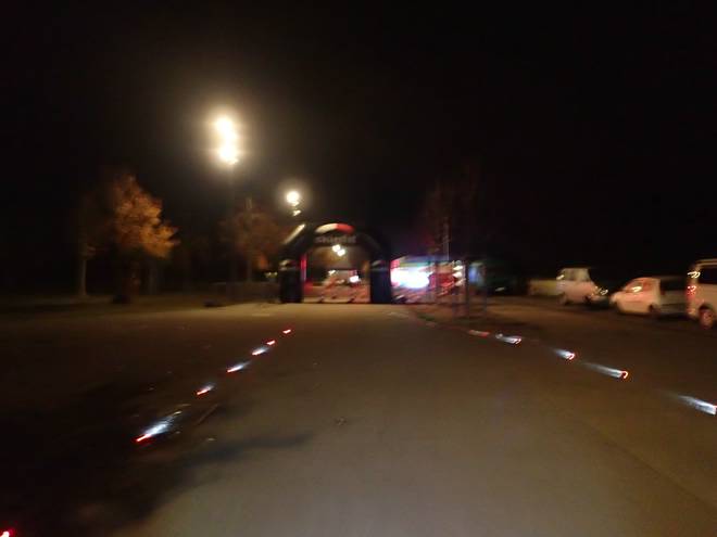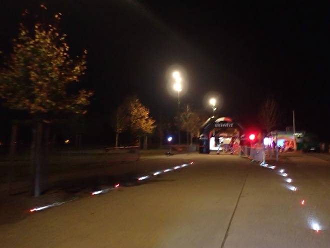 Runde 1 0.18 Uhr (MESZ) / Km 2,0 Erst die letzten 400 Meter bis Start und Ziel gab es wieder Beleuchtung. |