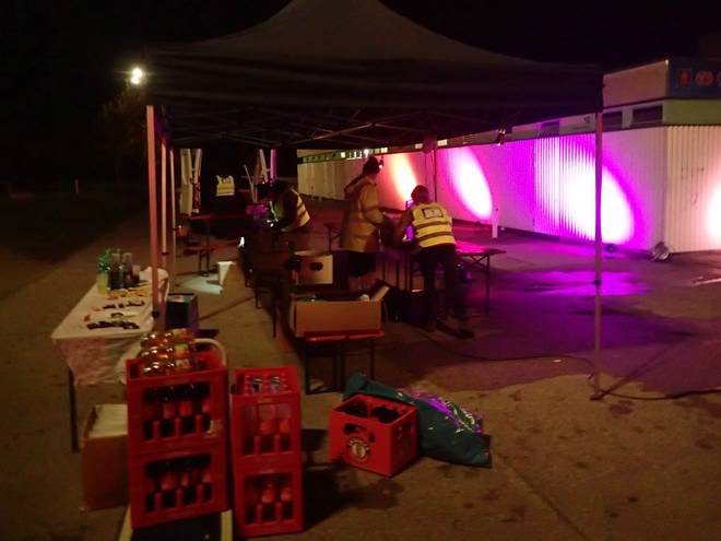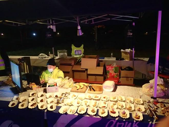 Riemer Park 23.43 Uhr Am Verpflegungsstand gab es Obst und Süßigkeiten einzeln portioniert. Getränke gab es aber ganz normal im Becher. |