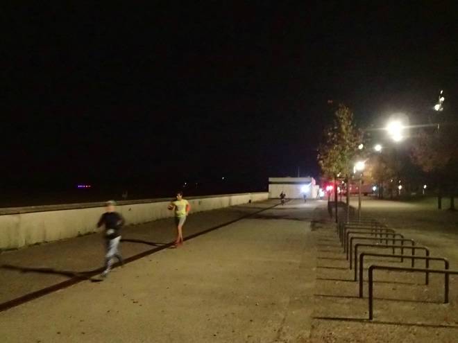 Runde 9 2.19 Uhr (MESZ) / Km 17,4 Nun wurde es etwas heller. Schneller machte es mich aber nicht. |