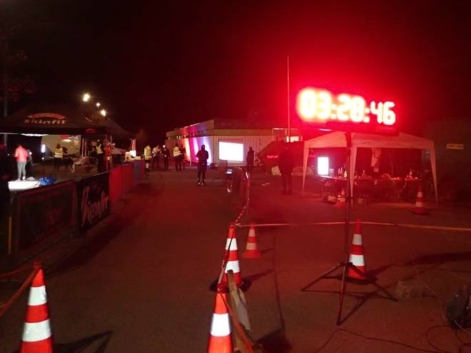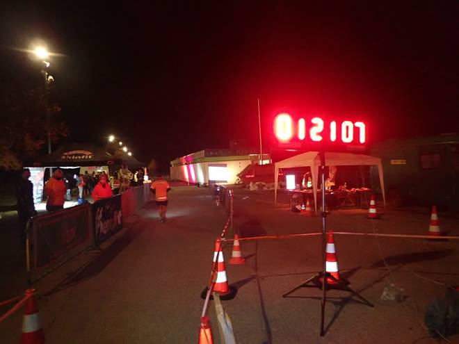 Runde 12 2.19 Uhr (MEZ) / Km 24,0 Mehr Sorgen machte ich mir wegen des nicht bekannten Zeitlimits. In den Vorjahren kamen die jeweils Letzten bei 5:30 bis 5:45 Stunden ins Ziel. Ich trottelte hier in Richtung 6:10 Stunden. |