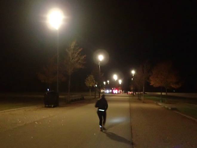 Riemer Park 25. Oktober 2020 - 0.02 Uhr Alle paar Sekunden ließ das grüße Licht einen Läufer auf die Strecke. Das ging relativ schnell. |