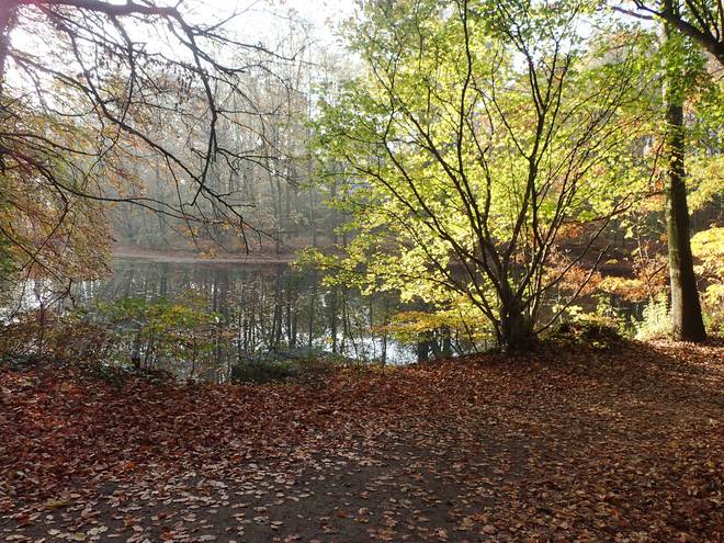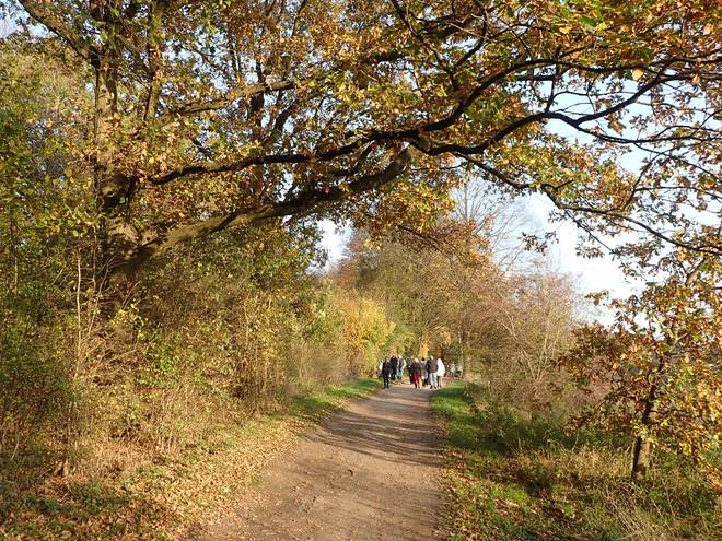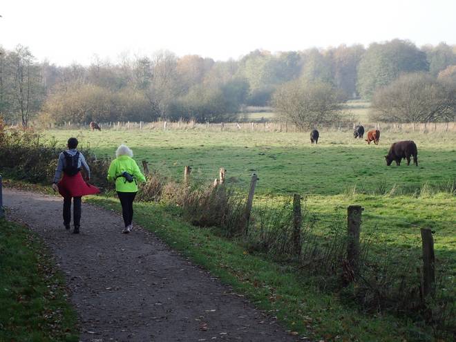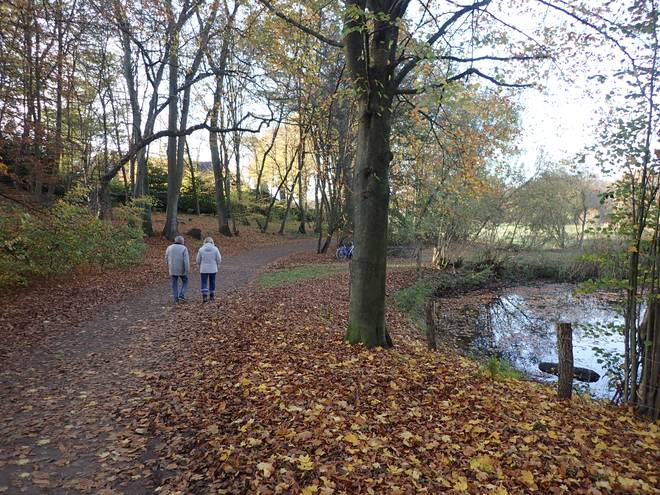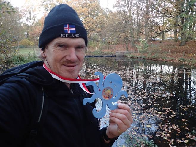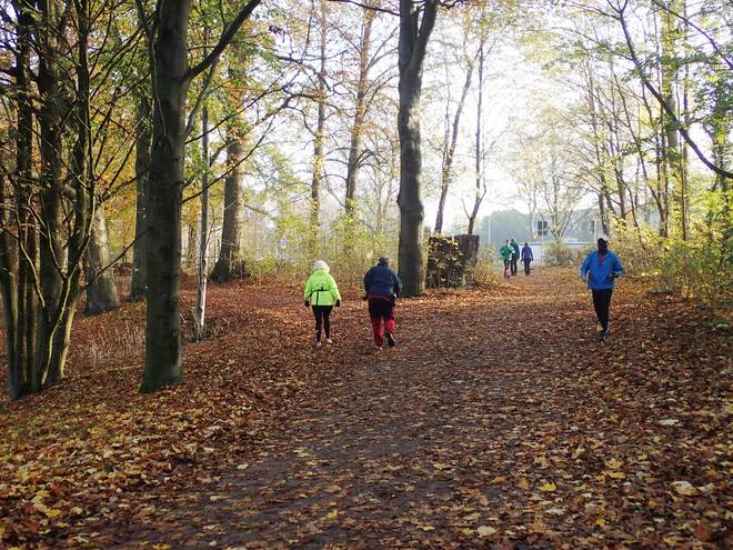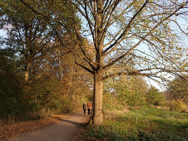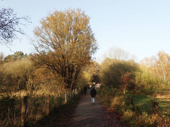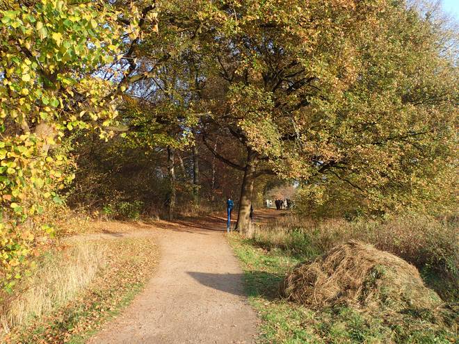 Volksdorfer Teichwiesen 9.05 Uhr Ich packte noch die Medaille sicher in den Rucksack und dann ging es auch für mich los. "Ging" war übrigens passend. Denn wie geplant wanderte ich ab Start los. Ich lief keinen Meter. |