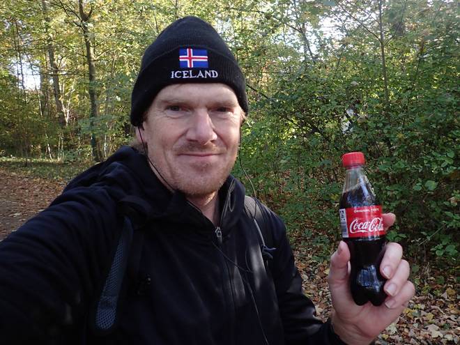 Runde 11 13.34 Uhr / Km 27,5 Etwas Zeit sparte ich, weil ich die Coca-Cola zum Trinken mitschleppte. Das hatte aber auch noch einen ganz anderen Grund. |