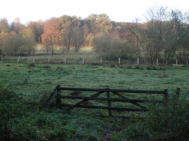 Runde 11 13.46 Uhr / Km 28,8 Vom Teichwiesen-Marathon wird gerne behauptet, es wäre unmöglich abzukürzen. Hmm. Stimmt das wirklich? Hier ist ein Gatter und auf der anderen Seite auch. Die Tiere (wenn mal welche da sind) können sich auf der Wiese dazwischen scheinbar frei bewegen. Dann müßte es aber doch auch für Menschen möglich sein, von Gatter zu Gatter zu gelangen und somit die Runde abzukürzen. Das Betreten der Wiese ist zwar verboten, aber das wäre das Abkürzen ja auch. Aber es wäre möglich. |