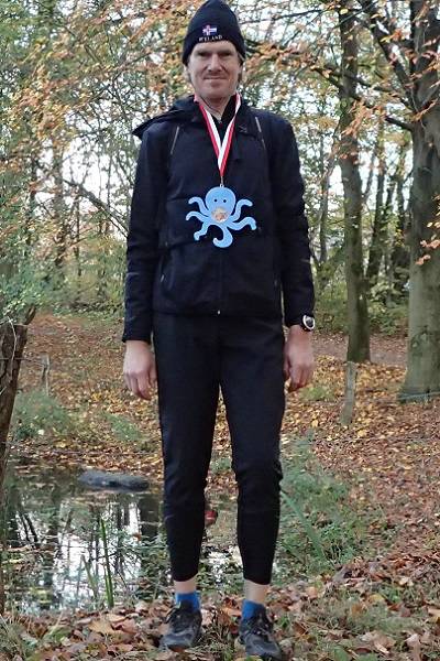 Volksdorfer Teichwiesen 9.03 Uhr Ein offizielles Treffen vor dem Start gab es nicht, zudem war Abstand zu halten. Man kam eigentlich nur zusammen, weil Christine noch die Medaillen verteilte. Als elfter von zehn Teilnehmern hatte ich kein Anrecht auf eine Medaille, allerdings kam einer nicht. Da hatte ich drauf kalkuliert und gewonnen. |