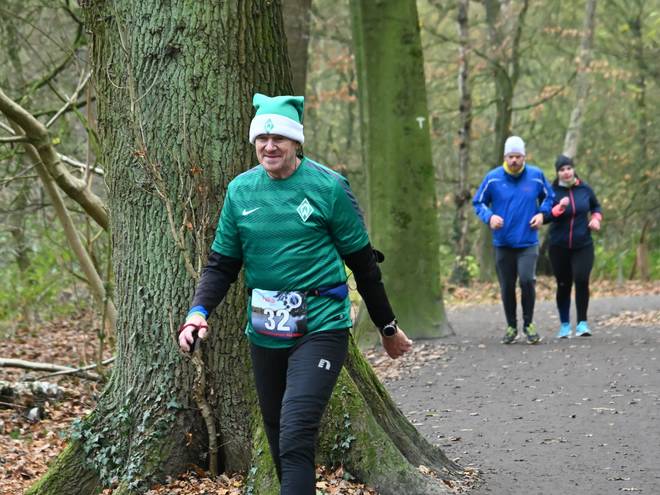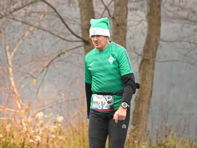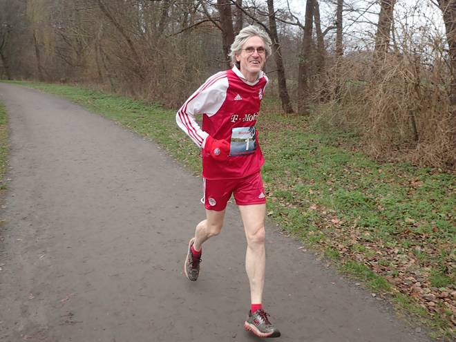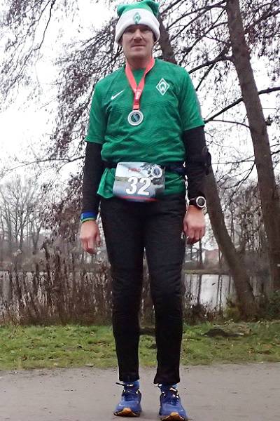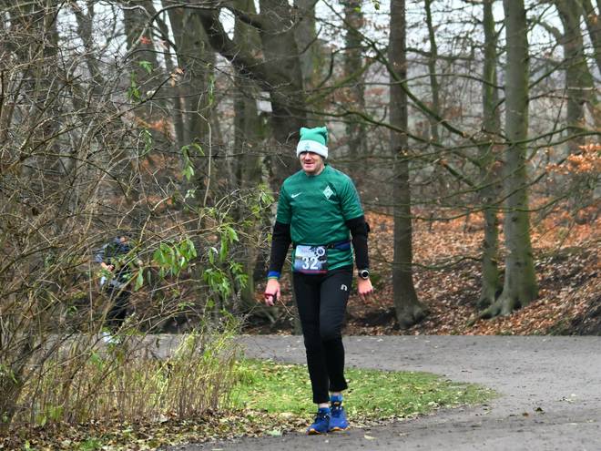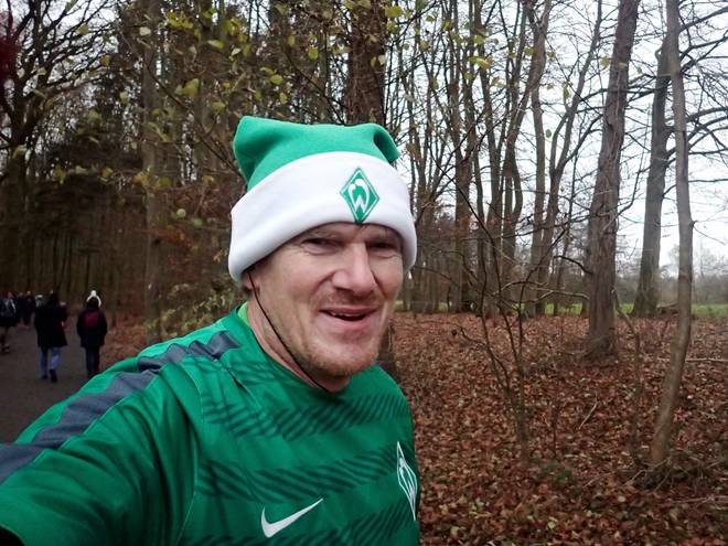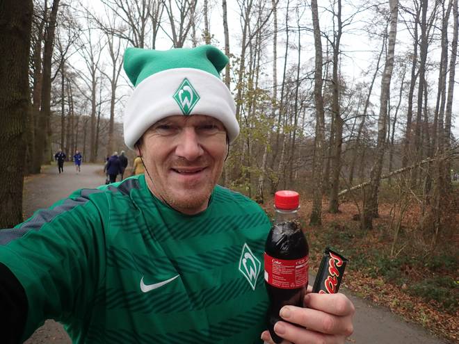 Runde 3 10.53 Uhr / Km 11,8 Schließlich war dann auch der Veranstalter auf der Strecke. Den läuferischen Vergleich Bayern München vs Werder Bremen würde er auch dieses Mal wieder gewinnen. 5:2 für Bayern nach sieben Rennen. Lauf 1 und 4 konnte ich noch für Werder gewinnen, aber nun war er um Stunden schneller. |