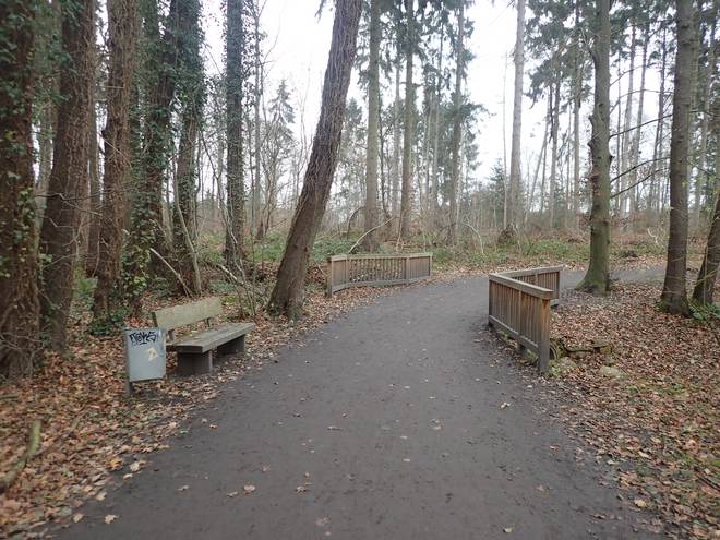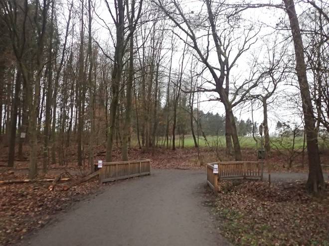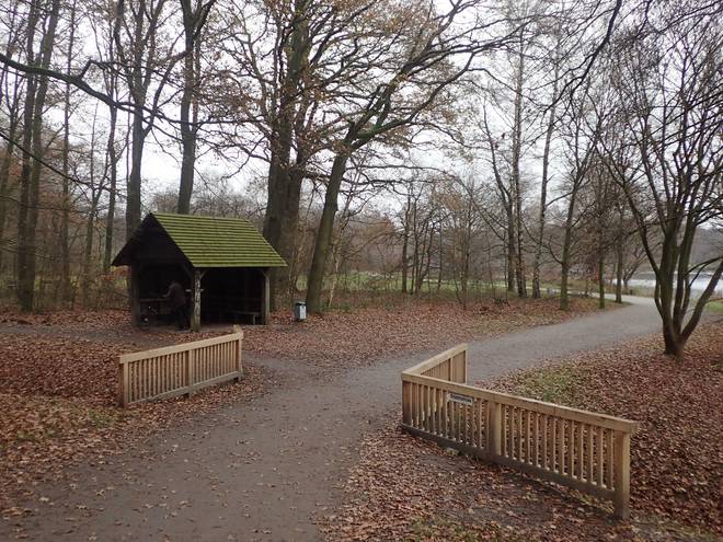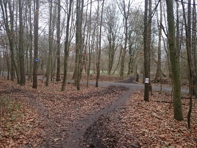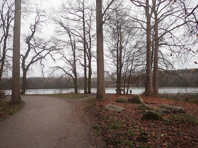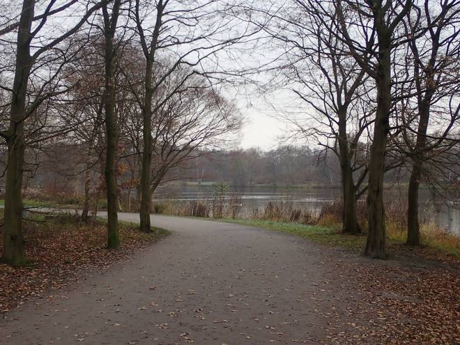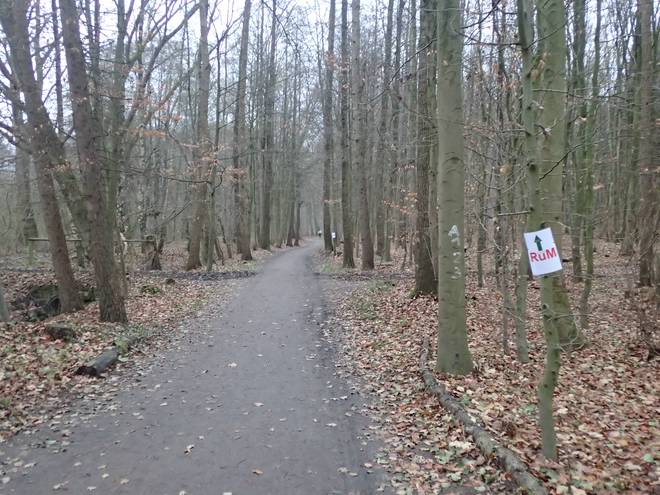 Runde 1 9.12 Uhr / Km 1,1 In Runde 1 und 9 lief man hier rechts weiter um den See, in den Runden 2 bis 8 ging es nach links noch in den Wald. |
