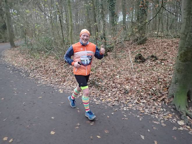 Runde 2 10.08 Uhr / Km 7,0 Mein 6:50-Stunden-Plan hatte zwei Haken. Pinkelpausen und Trinkpausen. Beide kosteten viele Zeit. Pinkeln wegen der drei Lagen Hosen (nur beim Laufen wird mir von alleine warm), Trinken wegen des Umweges zum Auto (plus auf und zu). Naja... bis es wirklich dunkel war, hätte ich 7:20 Stunden. |