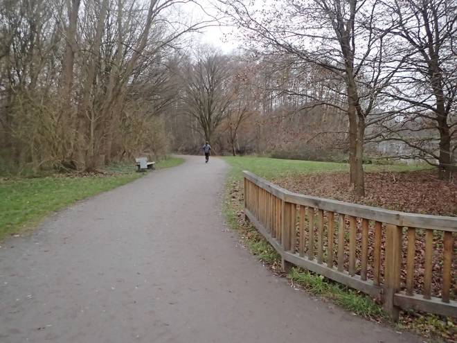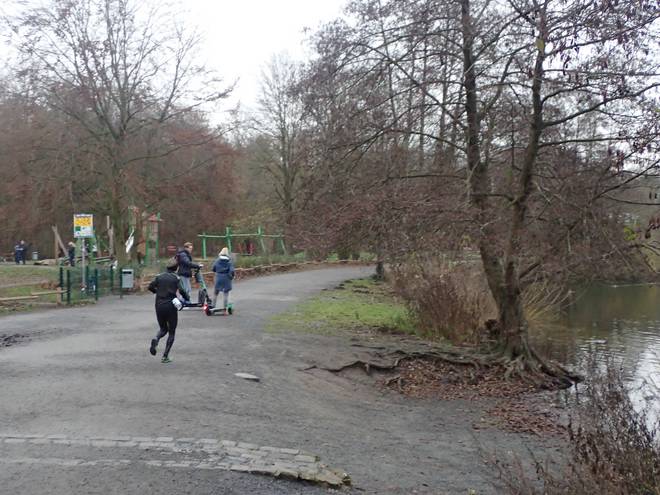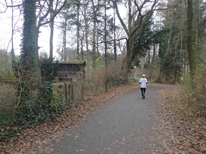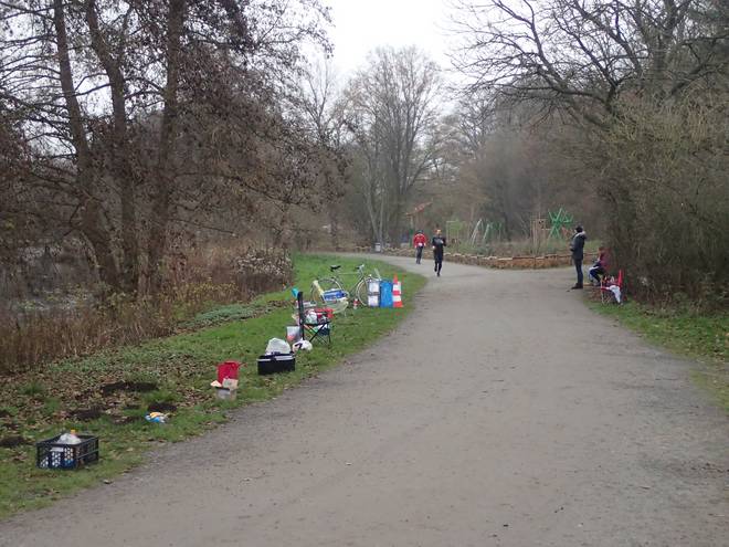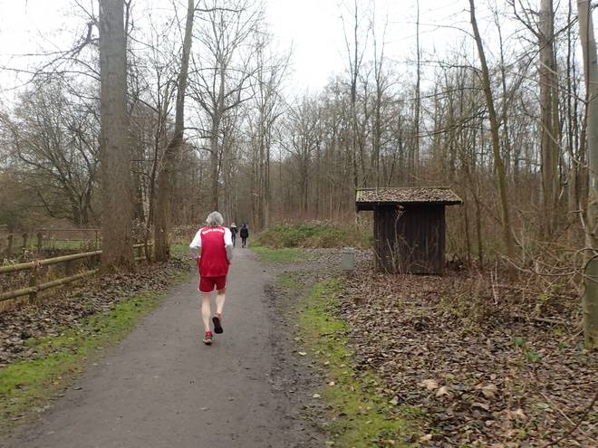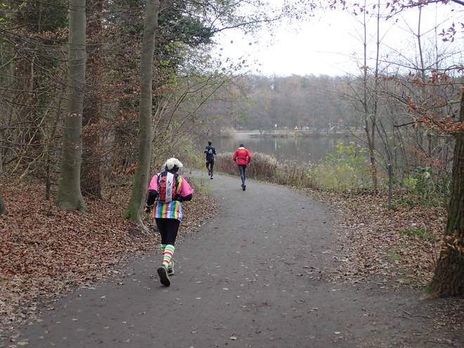Runde 4 11.21 Uhr / Km 14,7 Außerdem vertrieb ich mir die Zeit mit Fotos. Wobei ich aber nur Läufer mit Startnummern fotografierte. Es liefen ja auch Nicht-Teilnehmer unterwegs waren. |