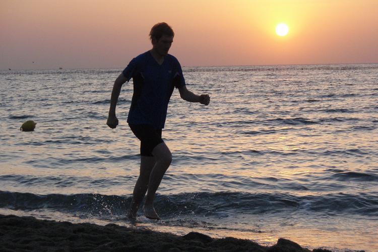 Barfuß Laufen am Strand. Morgens um 6.30 Uhr, 27°C.