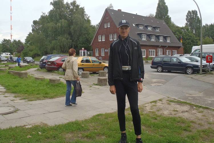 Läufer (also ich) am Startpunkt hinter der S-Bahn-Station Billwerder-Moorfleet