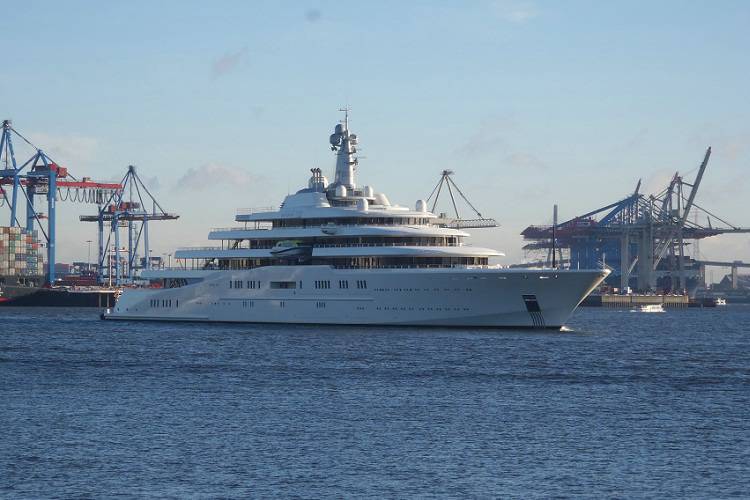 Rußland Milliadär Roman Abramowitsch holt sich sein neues Spielzeug bei Blohm + Voss ab: die 162,5 Meter lange Jacht "Eclipse" (Preis: € 550.000.000)