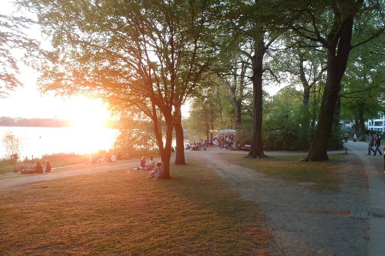 Außenalster bei Sonnenuntergang / Café Hansa Steg / Schöne Aussicht