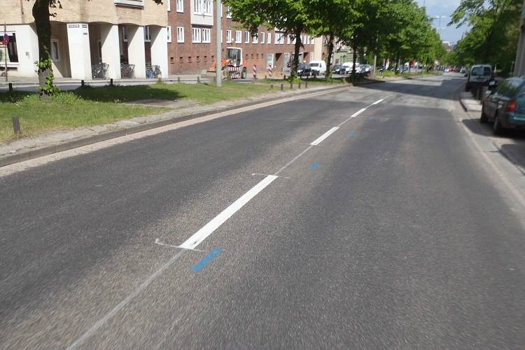 Auf der Breiten Straße sind schon die Marathon-Striche zu sehen